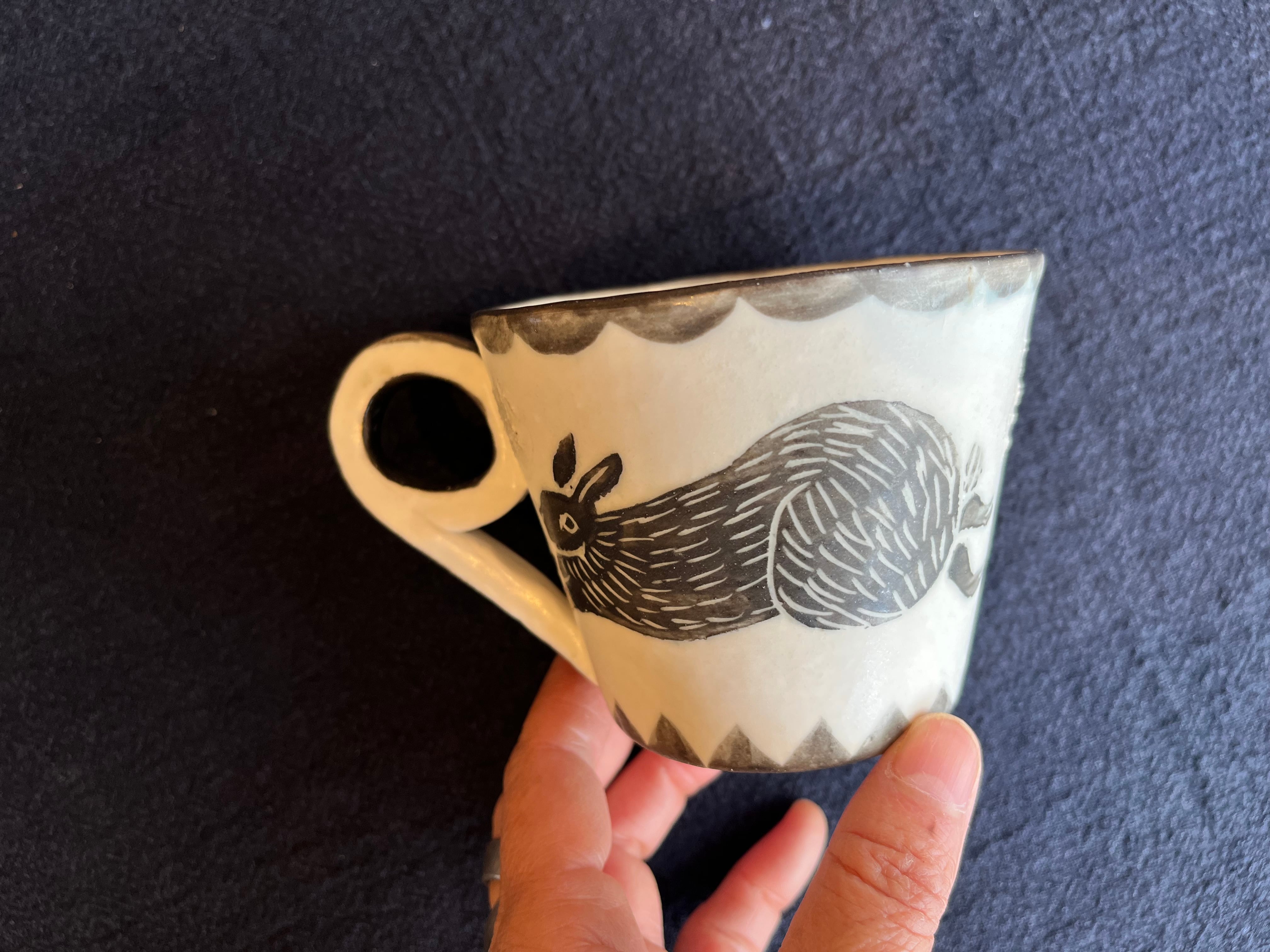 持ち手が9の形をしたマグカップです。